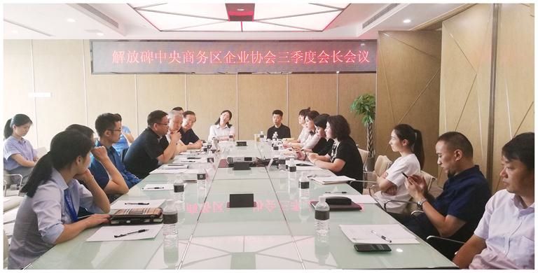 【華迅地產(chǎn)/總經(jīng)辦】2018年7月9日, 解放碑中央商務(wù)區(qū)企業(yè)協(xié)會(huì)在集團(tuán)會(huì)議室召開三季度會(huì)長(zhǎng)會(huì)議,渝中區(qū)商務(wù)局副局長(zhǎng)王永強(qiáng)、解放碑CBD管委會(huì)黨工委委員李揚(yáng)和來自解放碑企業(yè)協(xié)會(huì)的23家副會(huì)長(zhǎng)單位負(fù)責(zé)人匯聚一堂,共商渝中商務(wù)商貿(mào)、解放碑CBD在新形勢(shì)下的機(jī)遇與挑戰(zhàn),集團(tuán)作為三季度輪值會(huì)長(zhǎng)單位在會(huì)上組織審議二季度工作并部署三季度工作計(jì)劃。