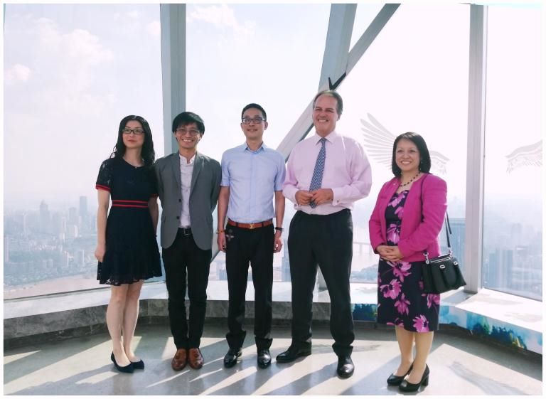 隨后,馬克部長一行在觀景臺(tái)上遠(yuǎn)眺渝中半島、江北嘴、南岸等山城風(fēng)景,感受山城別樣風(fēng)光,最后在觀景臺(tái)74樓合影留念。