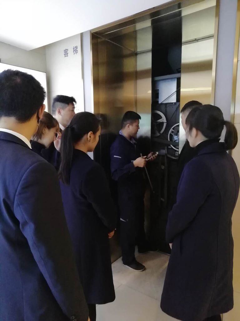 【新環(huán)金物業(yè)/工程部】20181226日,為進(jìn)一步提高電梯管理人員對電梯故障突發(fā)事件的應(yīng)變能力,特別是發(fā)生事故的應(yīng)急處理,保障乘客生命財產(chǎn)安全,將事故損害降到最低,由物業(yè)工程部牽頭,聯(lián)合物業(yè)其他部門與電梯維保迅達(dá)電梯公司一道開展電梯困人事故應(yīng)急救援演練。