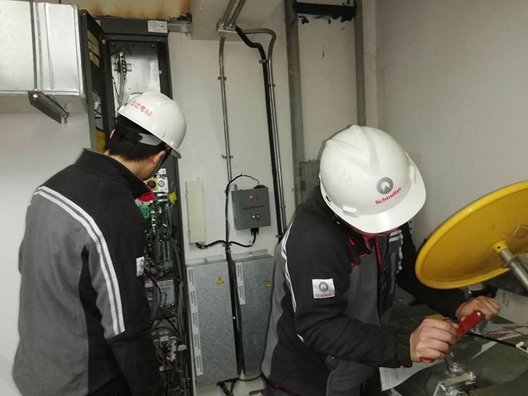 上圖:迅達(dá)電梯維修人員排除設(shè)備故障