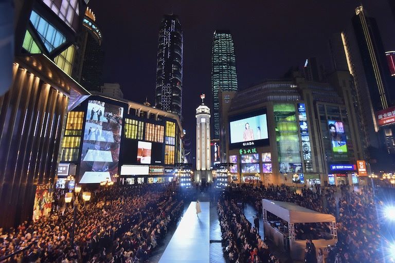 時裝秀當晚,解放碑中心的四面LED屏幕對GIADA大秀現(xiàn)場盛況進行了全程直播,重慶環(huán)球金融中心外墻巨幕也為GIADA全程點亮,普通市民也得以在現(xiàn)場共同欣賞時尚藝術。全國政商界名流、權威時尚媒體及GIADA頂級VIP均親臨現(xiàn)場共襄盛舉,為這場時尚品牌盛事畫下一個完美的句號。