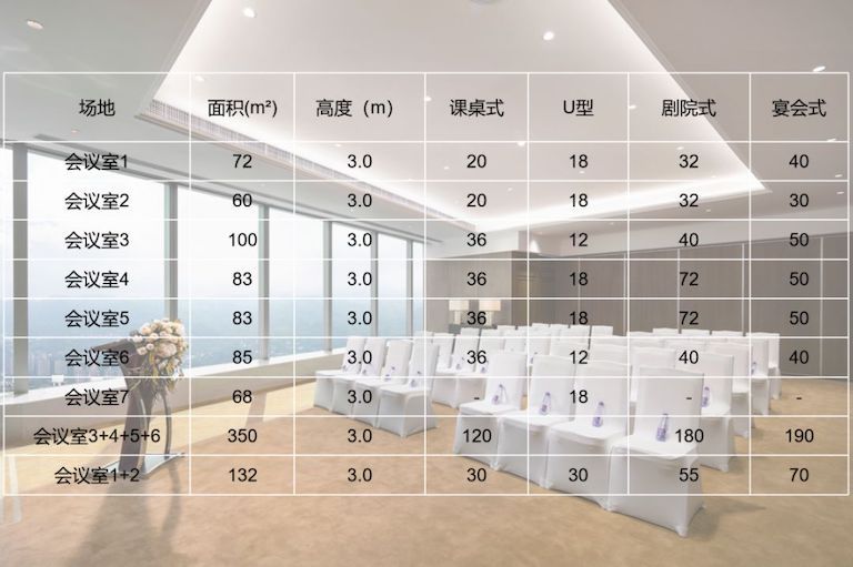 位于酒店66樓的7個獨立會議室和活動空間