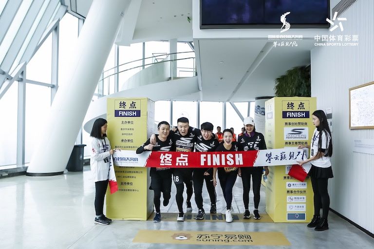 比賽設(shè)團(tuán)體、男子、女子三個(gè)組別。隨著發(fā)令號響起,登高樓愛好者們分批次從解放碑碑中心廣場出發(fā),穿過繁華的解放碑步行街,進(jìn)入重慶環(huán)球金融中心,向著高度為339米的73層WFC會(huì)仙樓觀景臺發(fā)起沖擊。小編在比賽現(xiàn)場看到,選手們你追我趕,沿著樓道奮力攀登。在跨越2000級臺階后,陸續(xù)來到位于73層的比賽終點(diǎn)。盡管早已汗流浹背,但依舊抑制不住征服“重慶之巔”的快樂,不少選手拿著紀(jì)念徽章與解放碑風(fēng)景合影留念。