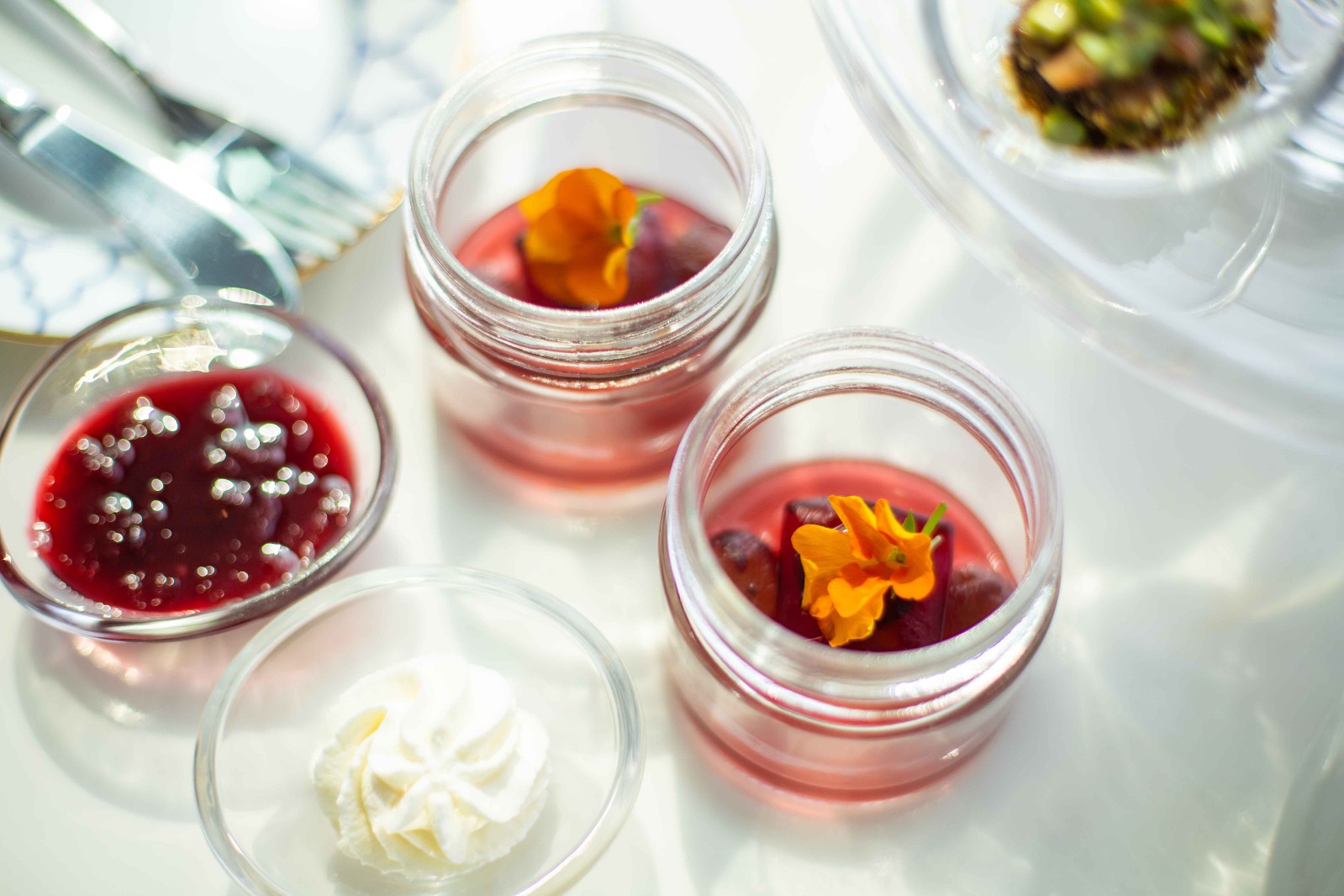 法芙娜70%巧克力夢龍 香草柚子奶油青檸檬泡沫 紅絲絨香橙芝士蛋糕 司康餅配樹莓玫瑰花果醬,香緹奶油 一顆葡萄 法式蝸牛 日式金槍魚配牛油果沙沙 青蘋果鵝肝批 冰鎮(zhèn)時(shí)令水果 夏季落日 CNY298元/套 雙人下午茶套餐 CNY398元/套 雙人下午茶套餐 含雙人會仙樓觀景臺門票 CNY498元/套 雙人下午茶套餐 含魚子醬配及土豆脆餅和奶油芝士 時(shí)間:下午14:00-17:30 地點(diǎn):69層 朝夕酒廊 電話:023-63509999-6213 (以上價(jià)格已包含服務(wù)費(fèi)及稅費(fèi))
